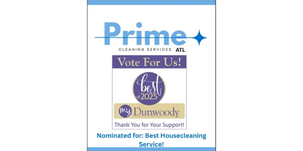 Thanks to the votes of our dedicated customer base and the My Dunwoody community, Prime ATL Cleaning Services received the highest number of votes in the Best Housekeeping Service category.